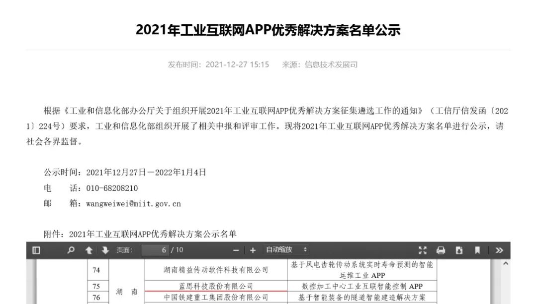 12月28日,工信部公示了《2021年度智能制造试点示范工厂揭榜单位和优秀场景》和《2021年工业互联网APP优秀解决方案》名单,蓝思科技与子公司蓝思系统集成有限公司联合打造的“显示元器件智能制造示范工厂”和“数控加工中心工业互联智能控制APP”两个项目上榜。