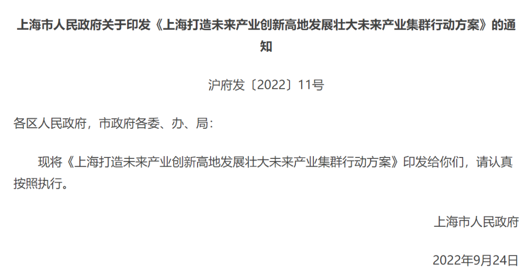 上海打造未来产业创新高地发展壮大未来产业集群行动方案