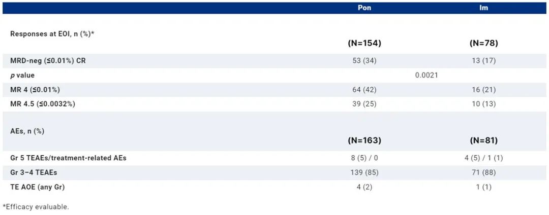 [1] First report of PhALLCON: A phase 3 study comparing ponatinib (pon) vs imatinib (im) in newly diagnosed patients with Philadelphia chromosome-positive acute lymphoblastic leukemia (Ph+ALL). Retrieved February 15, 2023 from https://meetings.asco.org/asco-plenary-series/15358?presentation=217784#217784
