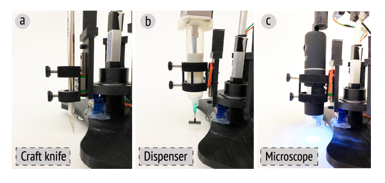这也是一种可创建高精度大规模电子产品的直接电路写入系统。Duco 支持三类工具:一个利用导电、介电和清洁油墨的笔刷,可用于在垂直表面上绘制电路;一个激光切割头可在大表面上进行 2D 切割;以及一个可用于自动固化打印油墨的紫外线发光头。