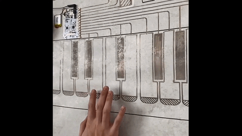 在墙上绘一架钢琴,就能像弹奏传统钢琴一样,去弹奏画在墙上的打印钢琴电路。
