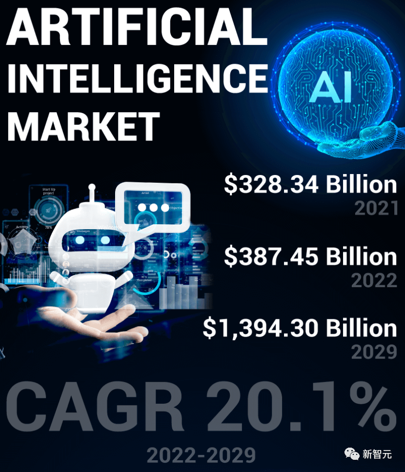 2021年,全球人工智能市场的总体规模为3,283.4亿美元,且预计将从2022年的3,874.5亿美元增长至2029年的13,943亿美元,年复合年增长率达20.1%。