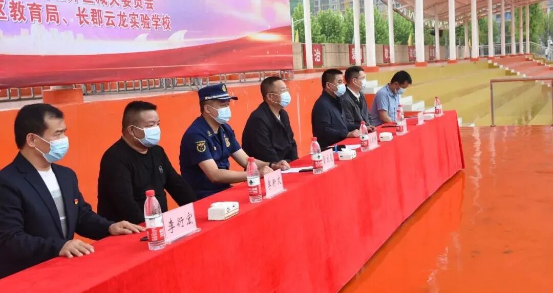 当天下午,区减灾委在长郡云龙实验学校进行了防震、防倒塌学生疏散演练。第一次地震警报响起后,学生在老师的指导下迅速用手护住头和胸,就近或蹲或躲在课桌下,以避开地震开始时的强烈震动。当震感减弱,第二次警报响起,学生们弯腰低身,沿着预定疏散路线,快速有序地撤离到安全空旷的操场。从警报响起到安全撤离,用时仅1分47秒。