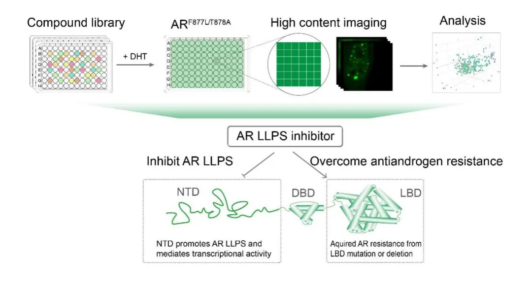 综上所述,作者揭示了液-液相分离对于AR转录机器形成和AR转录活性的重要作用。同时,液-液相分离在AR拮抗剂的耐药过程也起了关键的作用。在临床中发现的AR耐药突变在AR拮抗剂的存在下会发生化合物诱导的液-液相分离,使AR拮抗剂转变为AR激动剂。作者进一步通过化合物筛选,发现了AR 液-液相分离的小分子抑制剂可以有效抑制表达耐药突变AR或AR-V7的前列腺癌细胞生长。该工作为靶向蛋白液-液相分离来开发“难以成药”靶点的小分子药物奠定了坚实的基础。