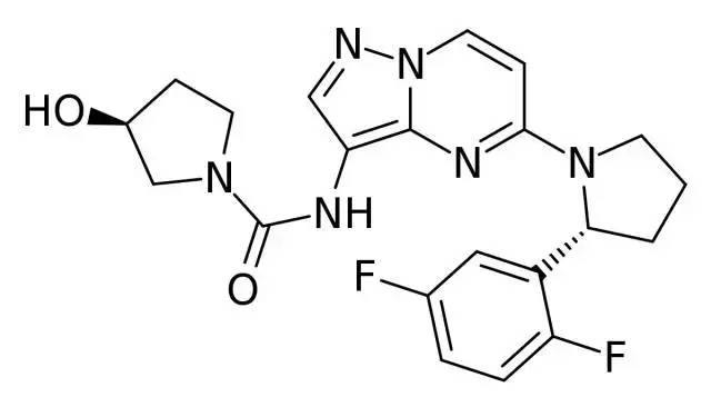 Larotrectinib 是 Loxo Oncology 公司和拜耳公司开发的新一代具备高度特异性的口服 TRK 抑制剂,