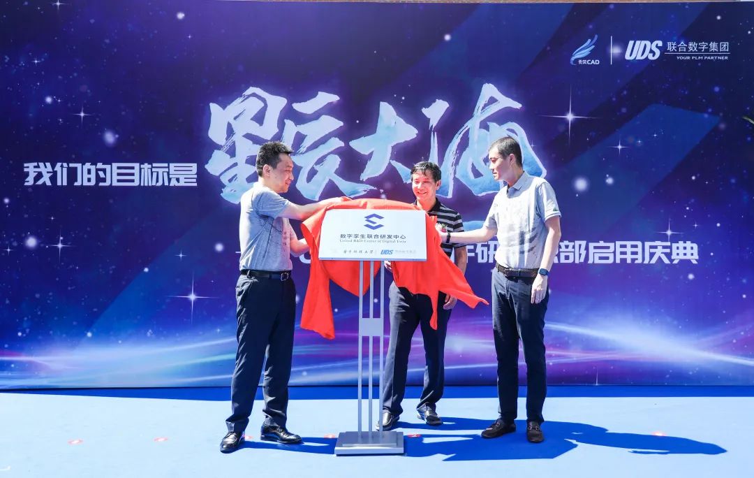 本次庆典的另一项重要议程,是为华中科技大学与UDS共建的产学研一体“数字孪生联合研发中心”正式揭牌。华中科技大学李斌教授、UDS副总裁史磊博士和UDS副总裁兼研发中心总监严翼飞先生参加了揭牌仪式。