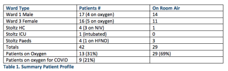 2021年12月2日,研究者对新冠病房的42例入院病例进行关于氧气依赖的情况统计显示,其中29例病例不依赖于氧气,这些患者在病房内呼吸情况良好,并未发现任何呼吸道症状问题,属于“偶然性新冠肺炎入院”,他们中绝大多数是伴随着其他的内科或外科疾病入院。另外,13例病例需要吸氧治疗,综合各种症状、临床体征、CXR以及炎症指标,并且这13例中9例被确诊为因新冠肺炎而需吸氧。