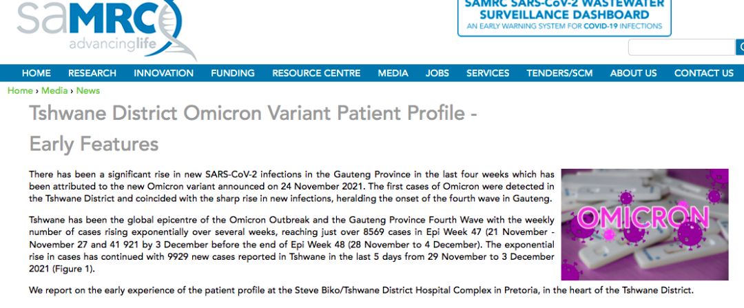 南非医学研究理事会出具的有关Omicron毒株的临床初步报告