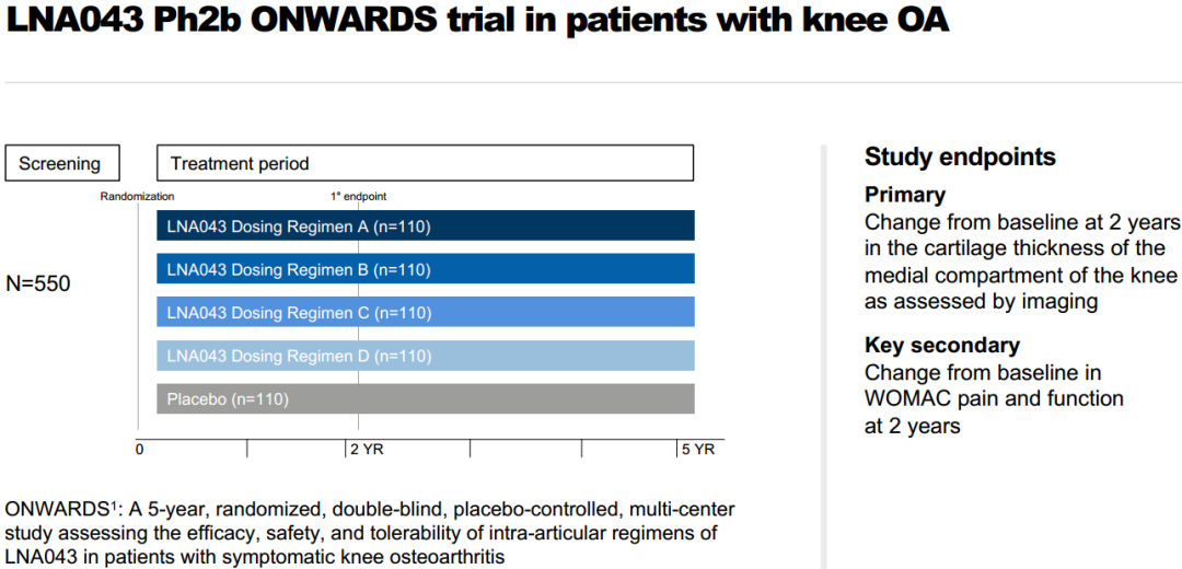 诺华正在开展一项针对膝关节炎患者的长达5年的IIb期研究,预计2026年获得结果。