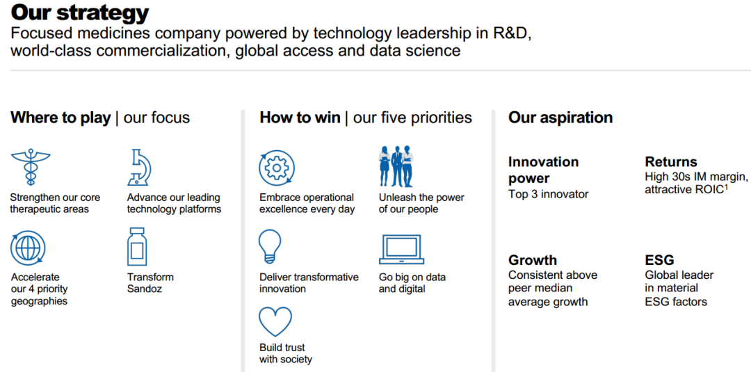 诺华的战略目标是成为技术驱动的专注于医药的公司,并在研发、全球商业化、准入和数据科学方面处于领先地位。
