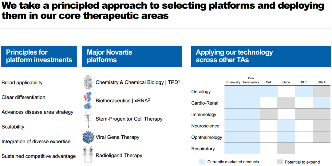 此外,诺华详细介绍了 公司5大新型技术以及基于每种技术开发的产品,篇幅有限,不再一一介绍。