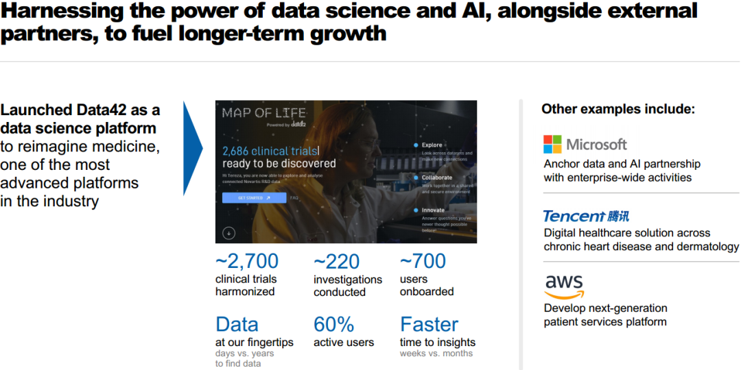 此外,诺华与微软、腾讯等多家互联网巨头达成合作,以期通过数据科学和人工智能的力量,促进长期增长。