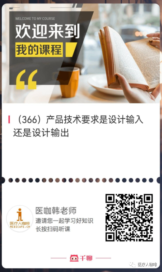 医咖网上课堂由九位医疗器械资深专家发起。旨在打造一个高效便捷、快速学习、良性互动的平台,让朋友们在此学习专业知识、结识良师益友。医咖网上课堂开设医疗器械质量法规及职业发展课程500多节,内容丰富、深入浅出,上线以来得到了朋友们的热烈欢迎。关注人数超过10000人,学习人次超二十万次,已成为国内在线学习医疗器械知识的标杆平台!欢迎添加韩老师微信(可获取200元抵扣券)成为网上课堂会员,本月底前所有课程畅听一年仅需399元!