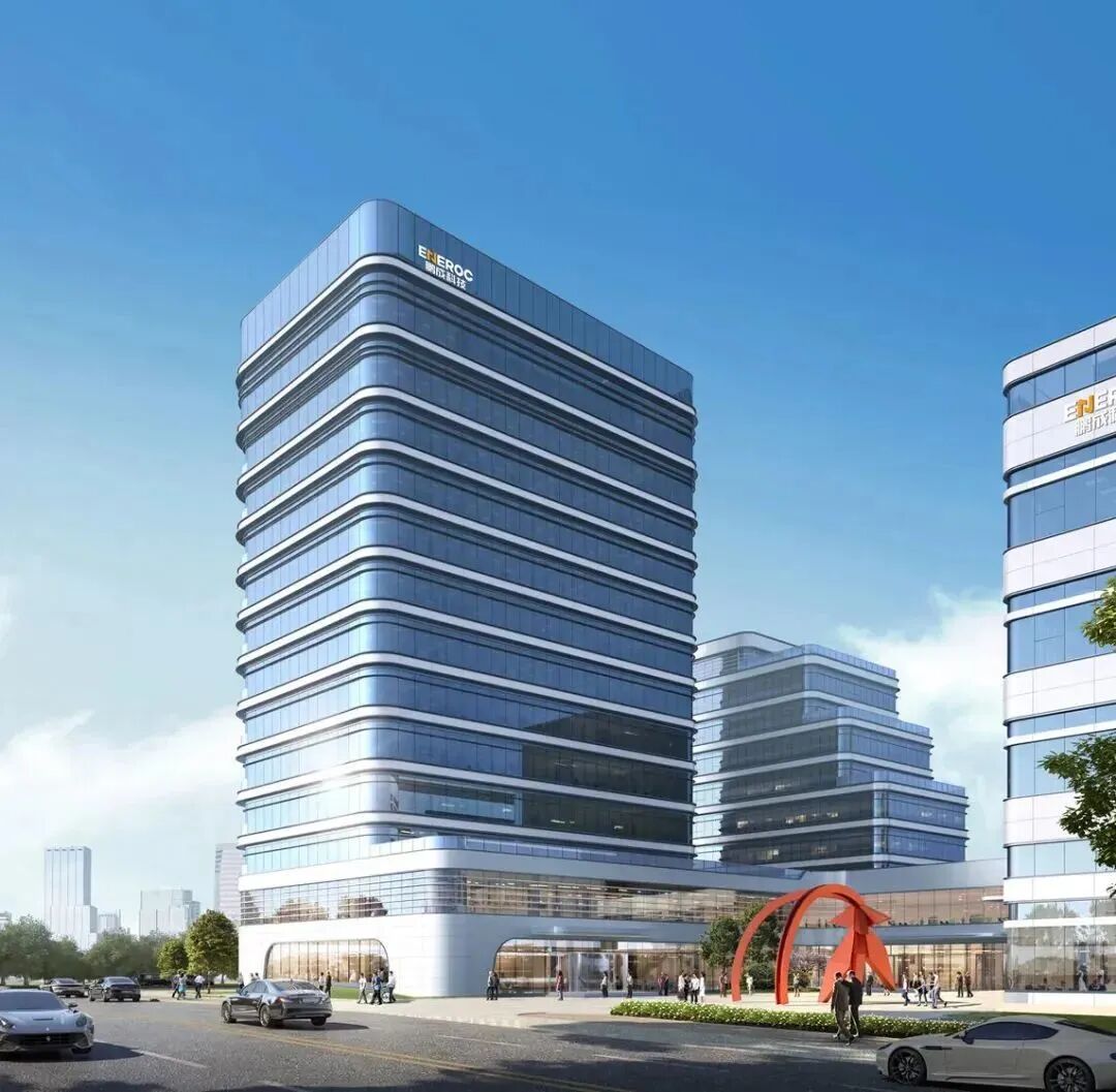 沿高尔夫路向东往鸡笼山村方向走,高低错落的四幢大楼相继映入眼帘,弧形立面极具柔和动感,这就是正在建设中的杭州鹏成新能源科技有限公司年产6GWh非道路车辆锂电池PACK生产基地。