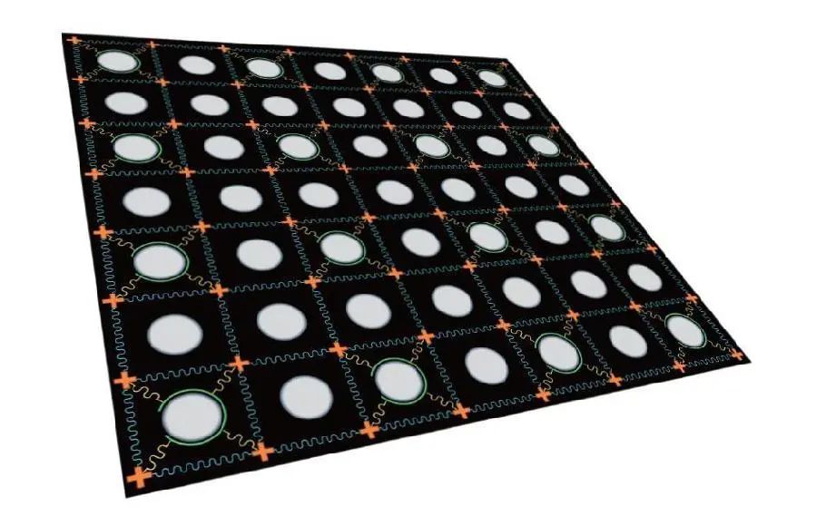 二维超导量子比特芯片示意图, 每个橘色十字代表一个量子比特。(科研团队供图)