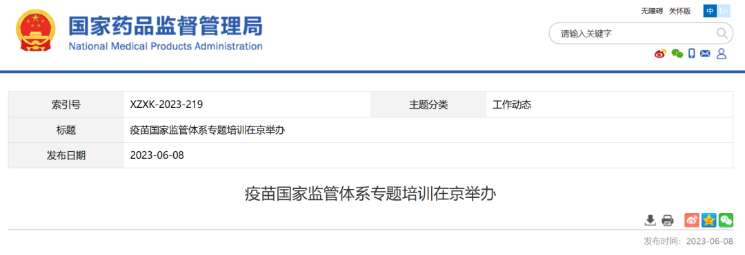 1、国家药监局:疫苗国家监管体系专题培训在京举办