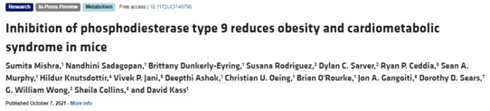 揭示PDE9抑制剂减肥机制,图片来自Journal of Clinical Investigation, 2021, doi:10.1172/JCI148798。