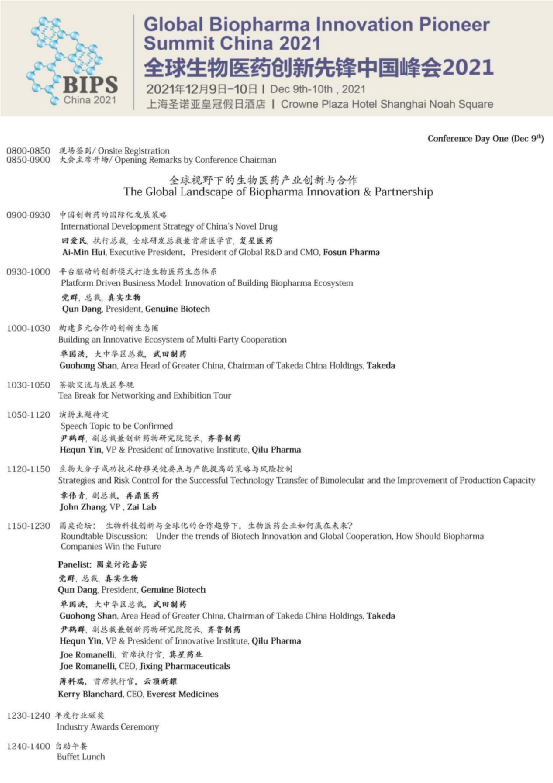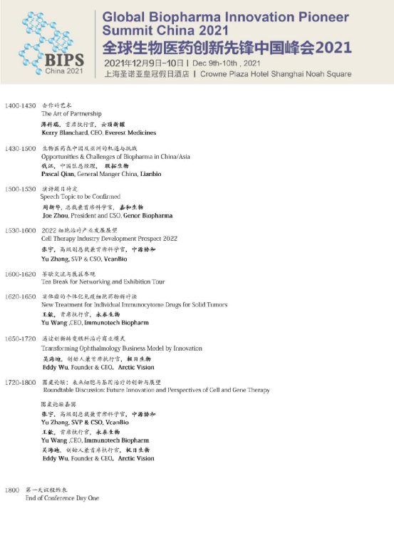 Global Biopharma Innovation Pioneer China Summit 2021 ( BIPS China 2021)