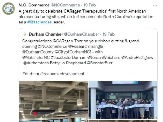 中国上海,美国北卡罗来纳州三角研究园,2022年2月21日,科济药业(股票代码:2171.HK),一家主要专注于治疗血液恶性肿瘤和实体瘤的创新CAR-T细胞疗法公司,今日公告,公司旗下美国公司CARsgen Therapeutics Corporation在美国北卡罗来纳州三角研究园(RTP)区域建设的cGMP生产工厂(以下简称“RTP生产工厂”)已通过当地政府官方检查。科济药业已获得达勒姆市县检验局颁发的合规证书,并启动临床生产运营。RTP生产工厂是科济药业全球首个启动运营的中国以外的工厂,标志着公司全球化布局迈上新台阶。
