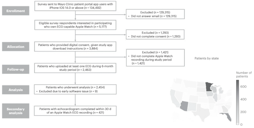 流程图(左)是总结患者登记的组合图。地图(右)描绘了美国境内登记患者的地理分布。