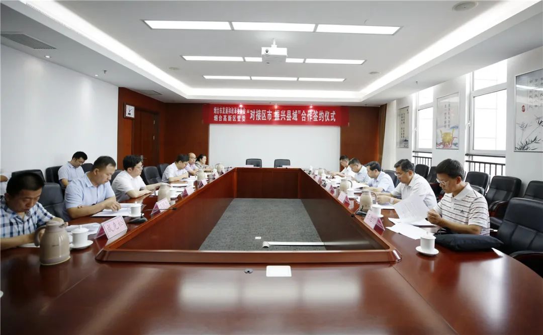 高新区汇报了省、市重点项目推进有关情况,并与市发改委就有关问题进行了座谈。会后,烟台市发改委副主任田序润、高新区管委科技副主任汪振杰分别代表烟台市发改委、高新区管委签订“振兴县域合作备忘录”。