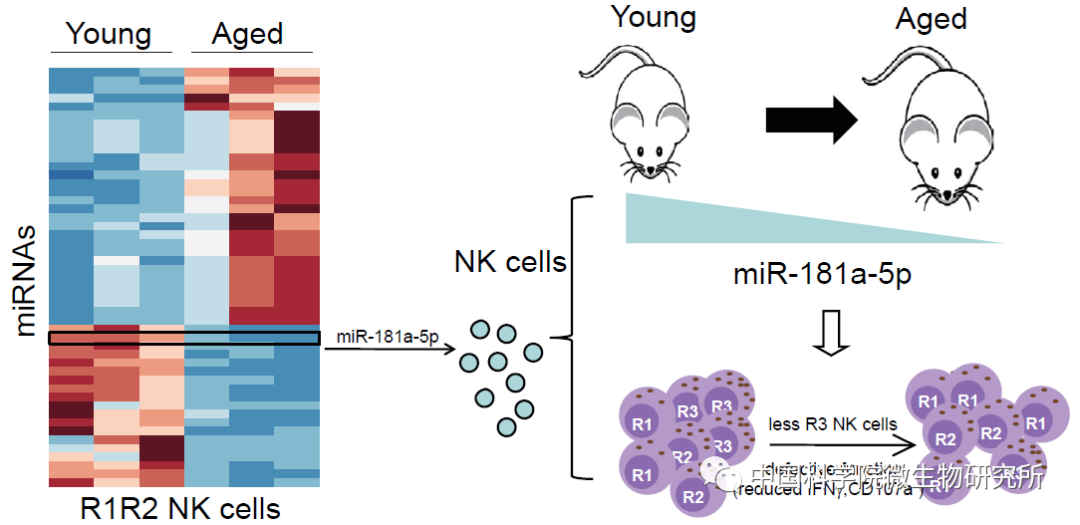 该研究成果首次证明miRNAs的变化与衰老导致的NK细胞发育和功能缺陷存在联系。
