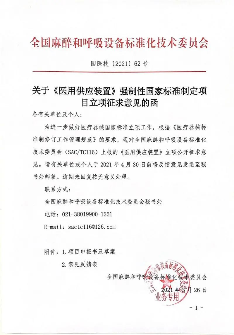 转发关于《医用供应装置》强制性国家标准制定项目立项征求意见的函