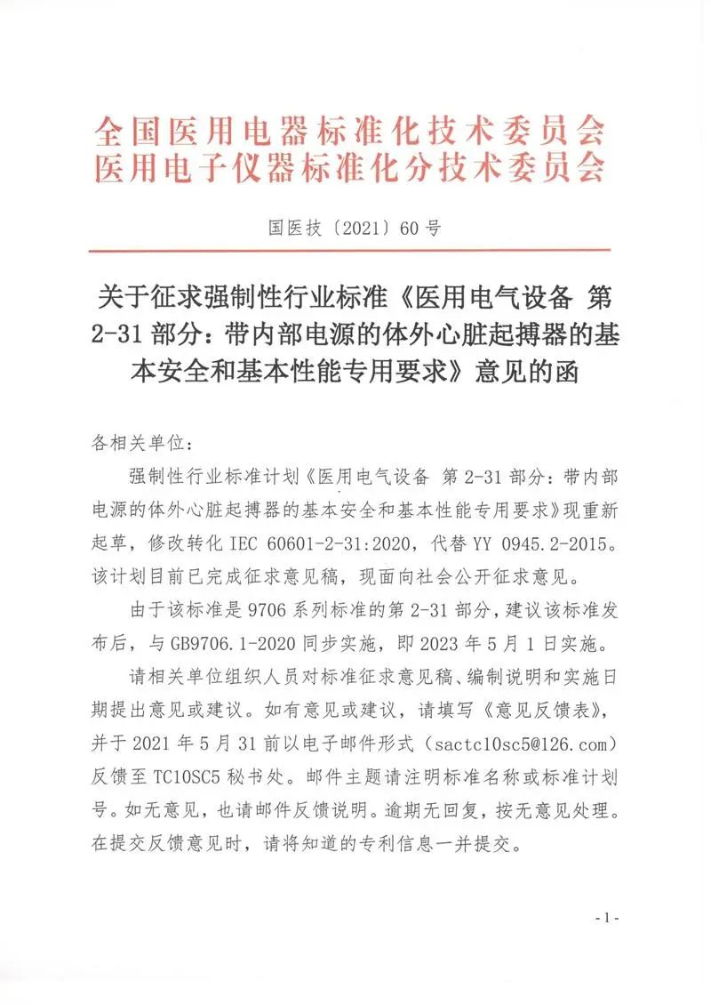 附件1:《医用电气设备 第2-31部分:带内部电源的体外心脏起搏器的基本安全和基本性能专用要求》征求意见稿.pdf