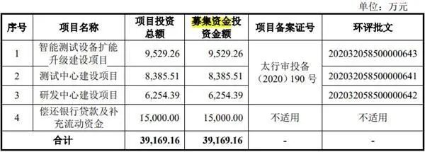 此次上市,公司拟募集资金3.92亿元,却要拿出1.5亿元(占比38.3%)用于偿还银行贷款和补充流动资金;而对于“智能测试设备扩能升级建设项目”等主要项目的投资却均未超过1亿元。