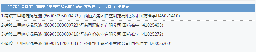 小儿复方磺胺二甲嘧啶散:30个批准文号: