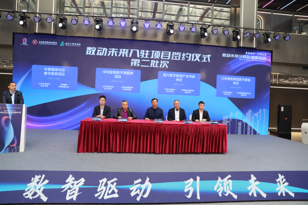 活动中举行的签约仪式上,京东集团数字商贸项目、格力数字制造产业学院项目、中科院数字物联网项目等12个数字经济项目签约落户数动未来空间站,项目内容涉及数字商贸、数字专项基金、数字直播、数字文化、元宇宙、数字制造、物联网、数字营销、数字教育等数字经济领域。这些项目充分整合各投资公司资源,依托江宁高新区禀赋优势,与江苏经贸职业技术学院、数动未来空间站开展多元化、全方位的战略合作,引培数字人才,孵化数字产业,建设数字运营平台,提供数字化综合服务,推动数字创新成果落地,打造新消费场景,构建服务与体验中心,促进数字经济与实体经济深度融合。