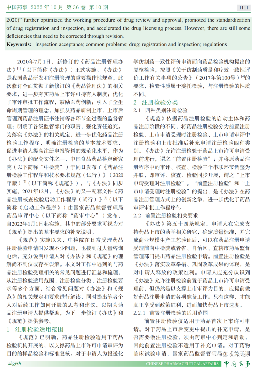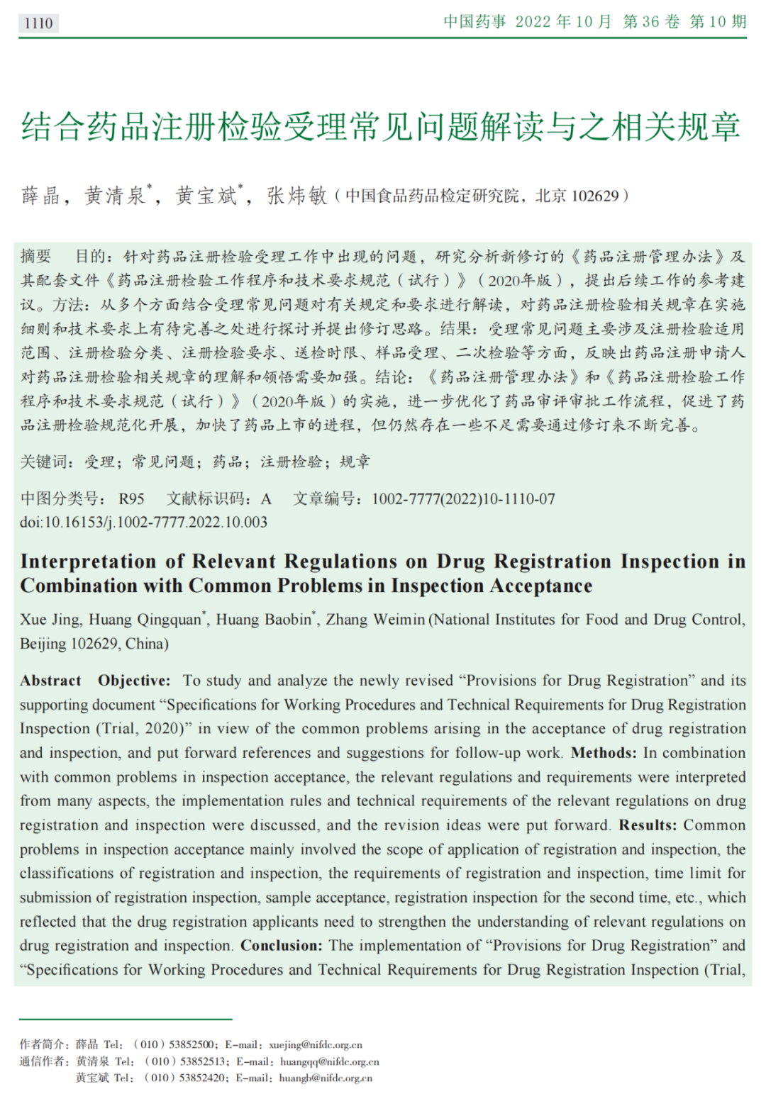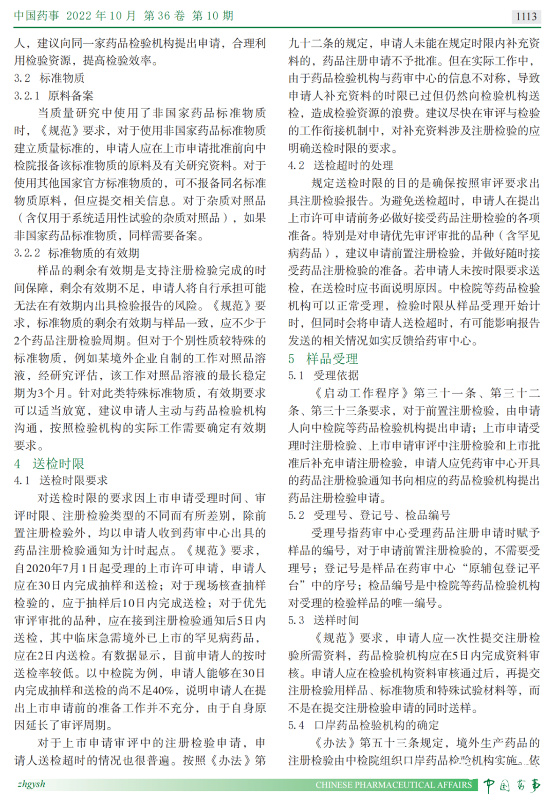 本次阅读的文献是来自于中国食品药品检定研究院的薛晶于2022年10月发表在《中国药事》上的《结合药品注册检验受理常见问题解读与之相关章节》。