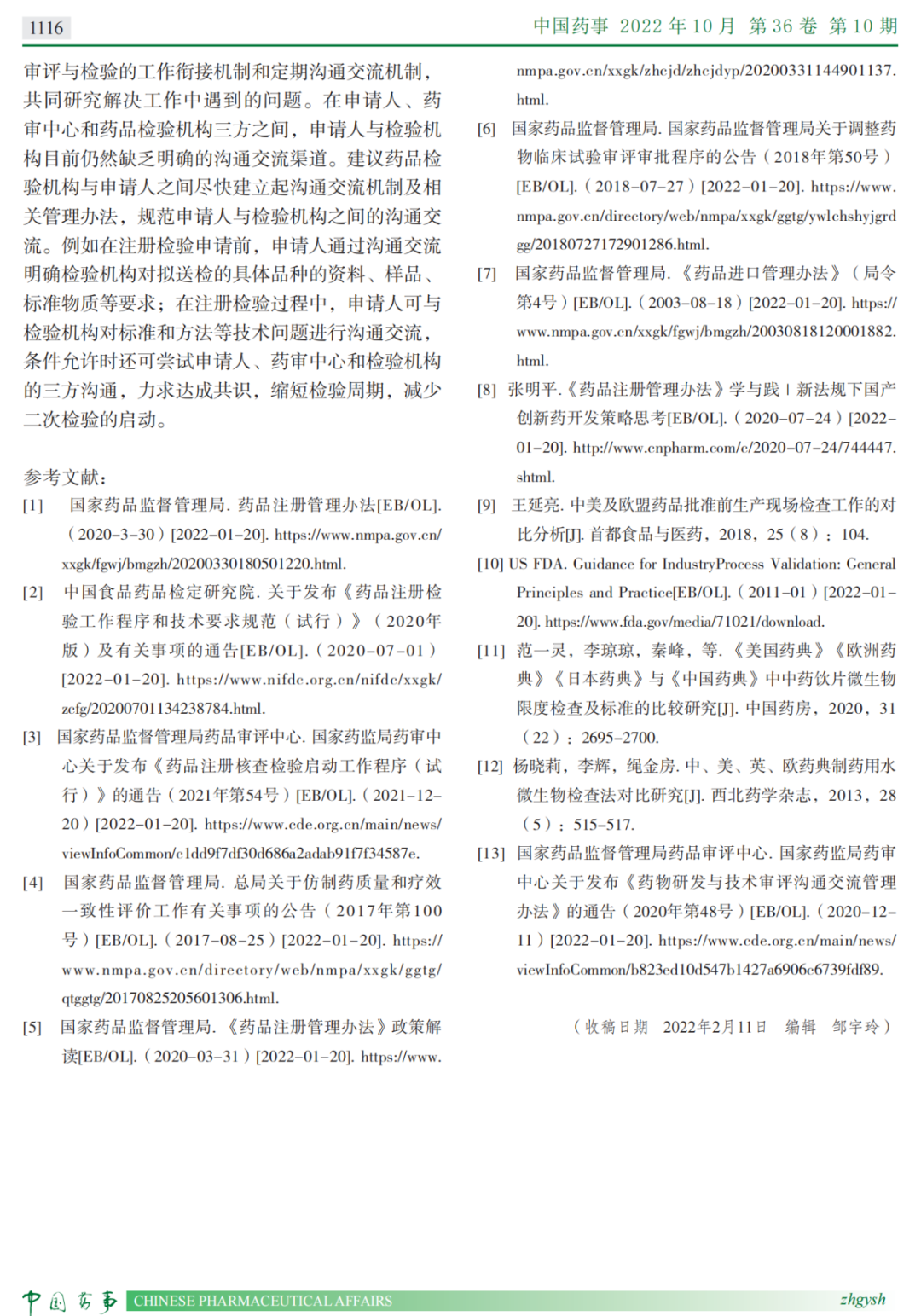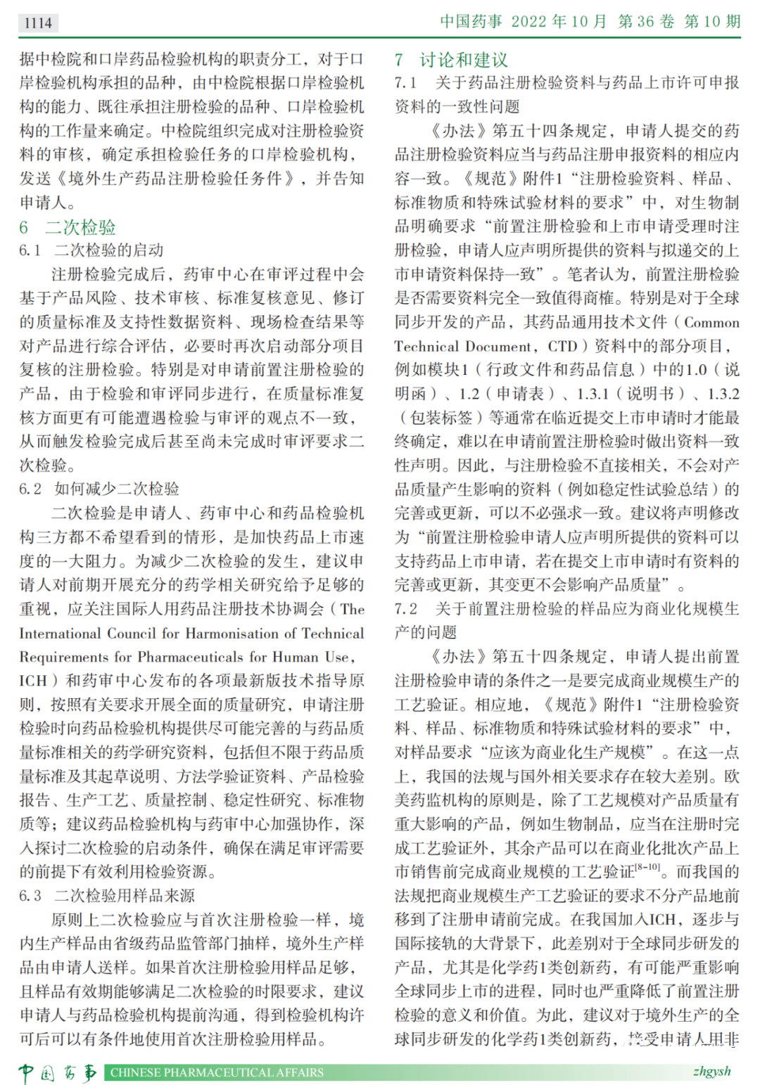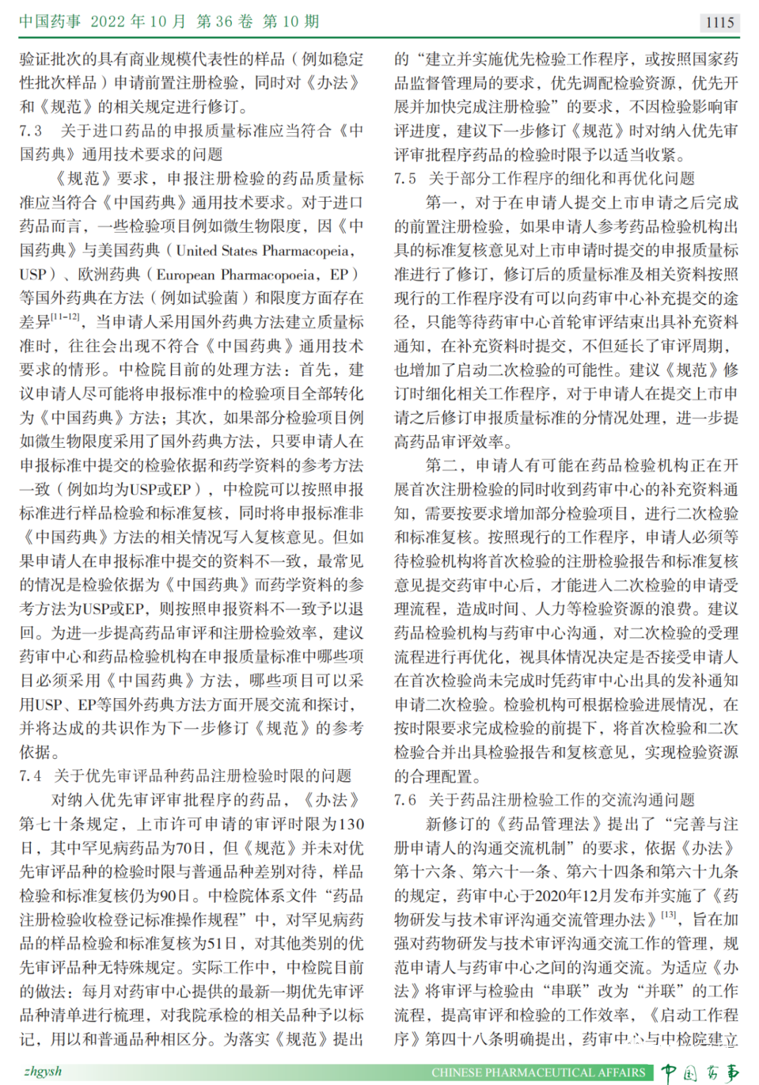 本次阅读的文献是来自于中国食品药品检定研究院的薛晶于2022年10月发表在《中国药事》上的《结合药品注册检验受理常见问题解读与之相关章节》。