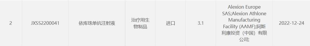 依库珠单抗于2018年获NMPA批准上市,用于治疗罕见病阵发性睡眠性血红蛋白尿症(PNH)和非典型溶血性尿毒症综合征(aHUS)。截至目前,依库珠单抗已经在多个国家和地区获批包括阵发性睡眠性血红蛋白尿症、非典型溶血性尿毒症综合征、抗乙酰胆碱受体(AchR)抗体阳性的全身型重症肌无力(gMG)、视神经脊髓炎等在内的多个适应症。
