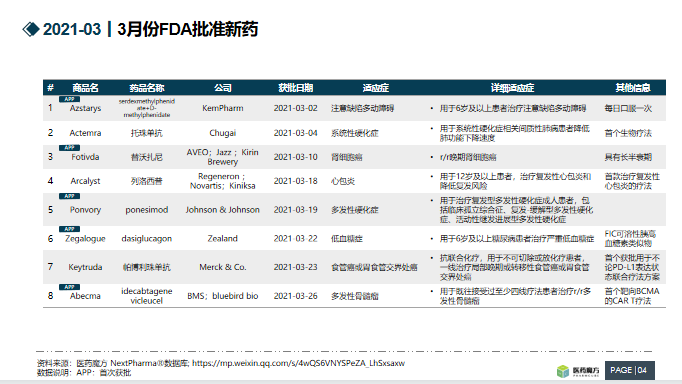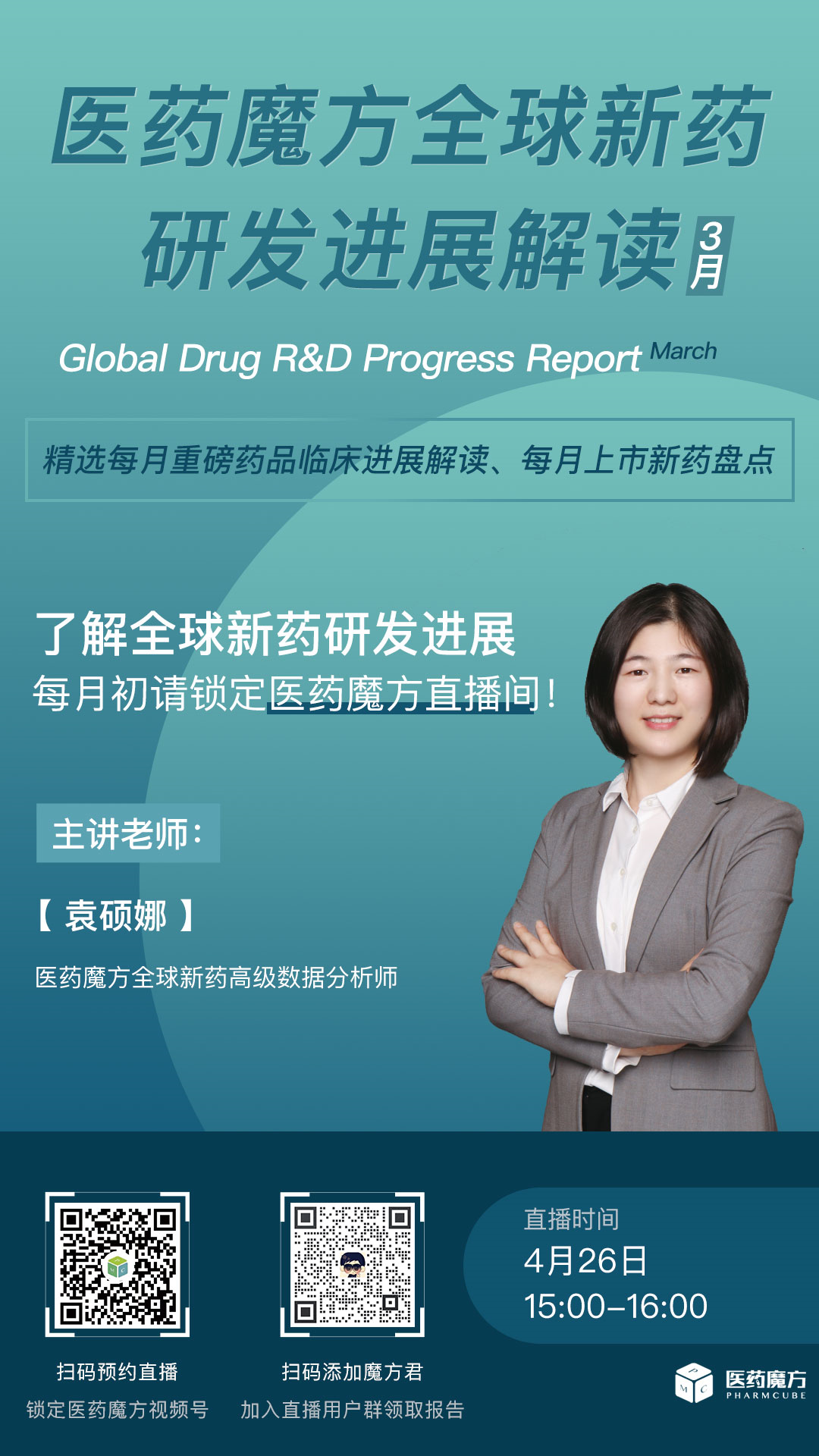↑【4月26日下午15:00】↑医药魔方全球新药高级数据分析师袁硕娜将为大家带来“2021年3月全球新药研发进展”的主题直播分享,内容包含