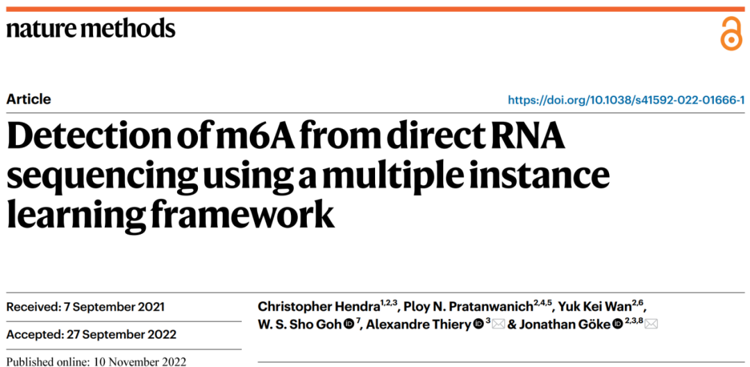 提出了一种基于神经网络的方法m6Anet,利用多实例学习框架处理数据中的缺失,对不同的细胞系和物种均具有较高的识别精度,可以从一次直接的RNA测序中捕获m6A的转录组范围内量化信息。