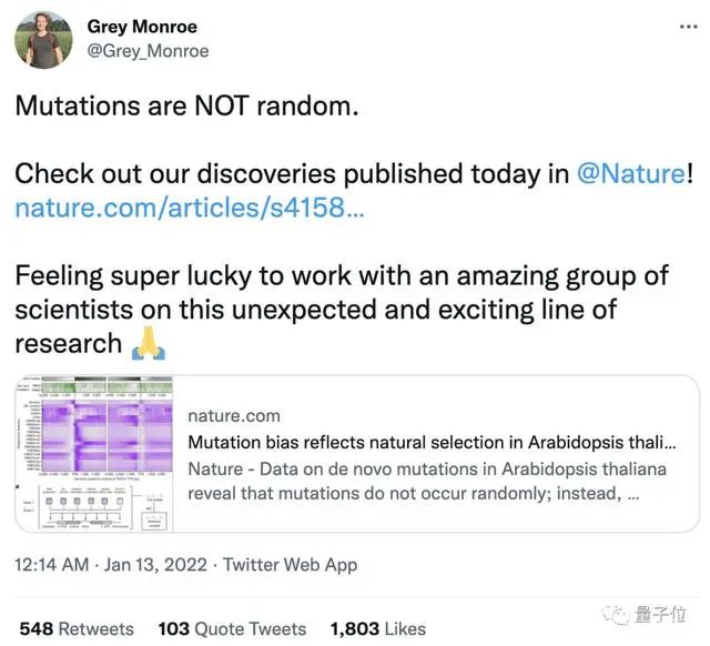不过Grey Monroe也在最后表示,从历史上来看,“突变是随机的”显然是一个过于简单的断言,或者“糟糕的假设”,而他很高兴这篇论文引发了对这一理论的广泛讨论。