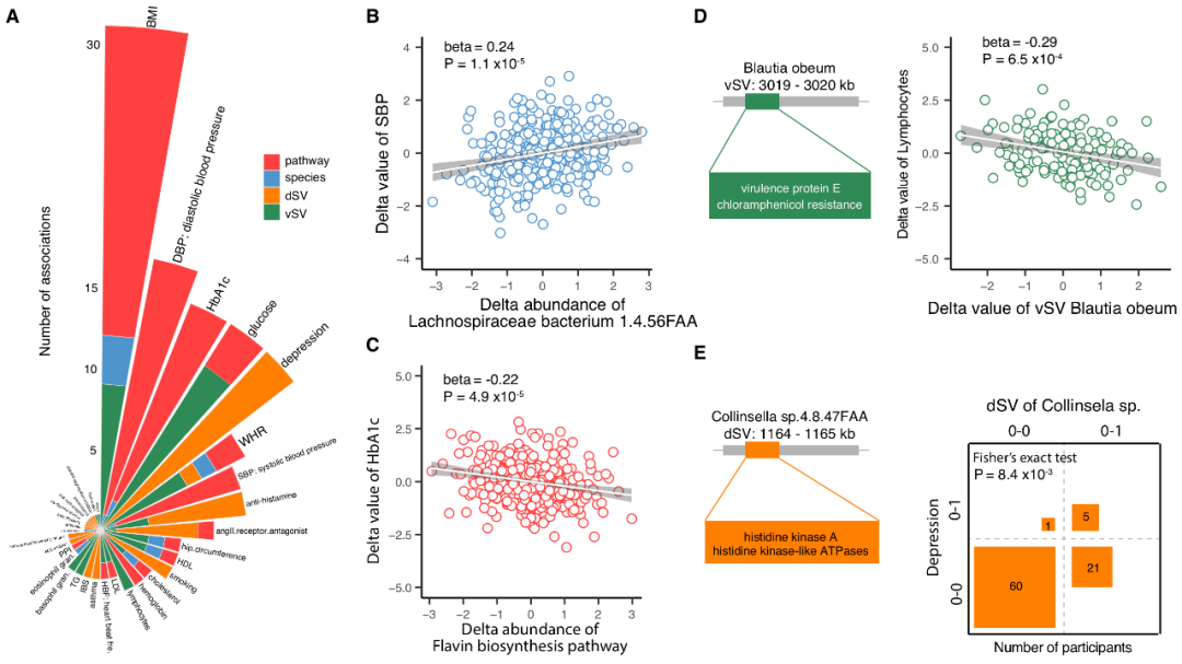 等变化与宿主血压、糖尿病指标、免疫细胞及抑郁症等变化相关。