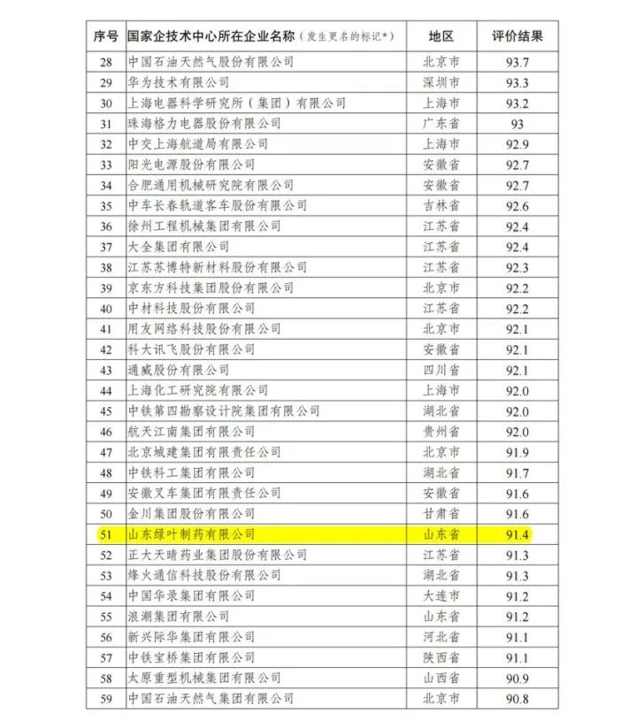 近日,国家发展改革委印发《国家企业技术中心2021年评价结果的通知》,全国共1744家国家企业技术中心参与评价,72家获评优秀,山东省6家获评优秀,我区山东绿叶制药有限公司列全国第51位,为烟台唯一一家获评优秀的国家企业技术中心。