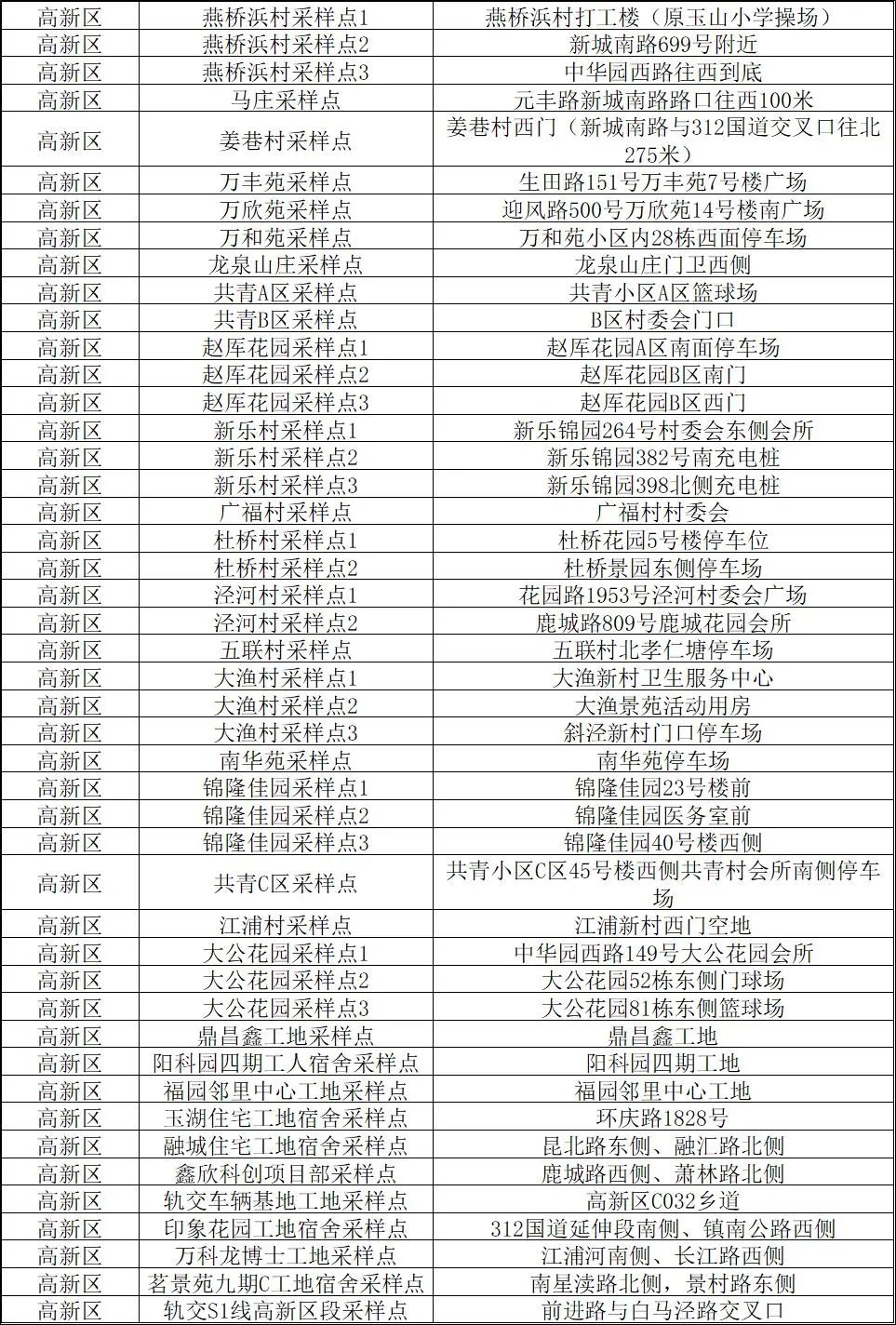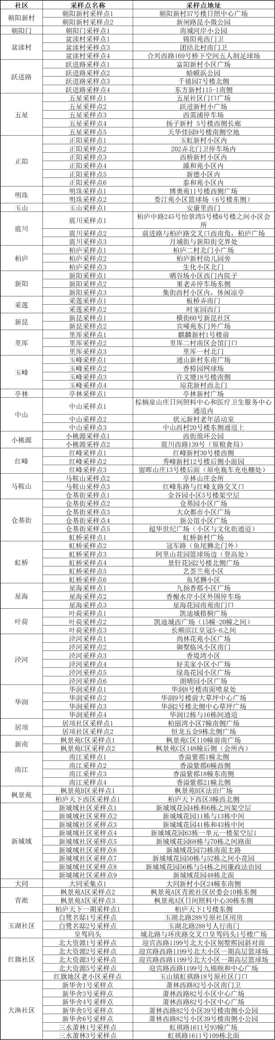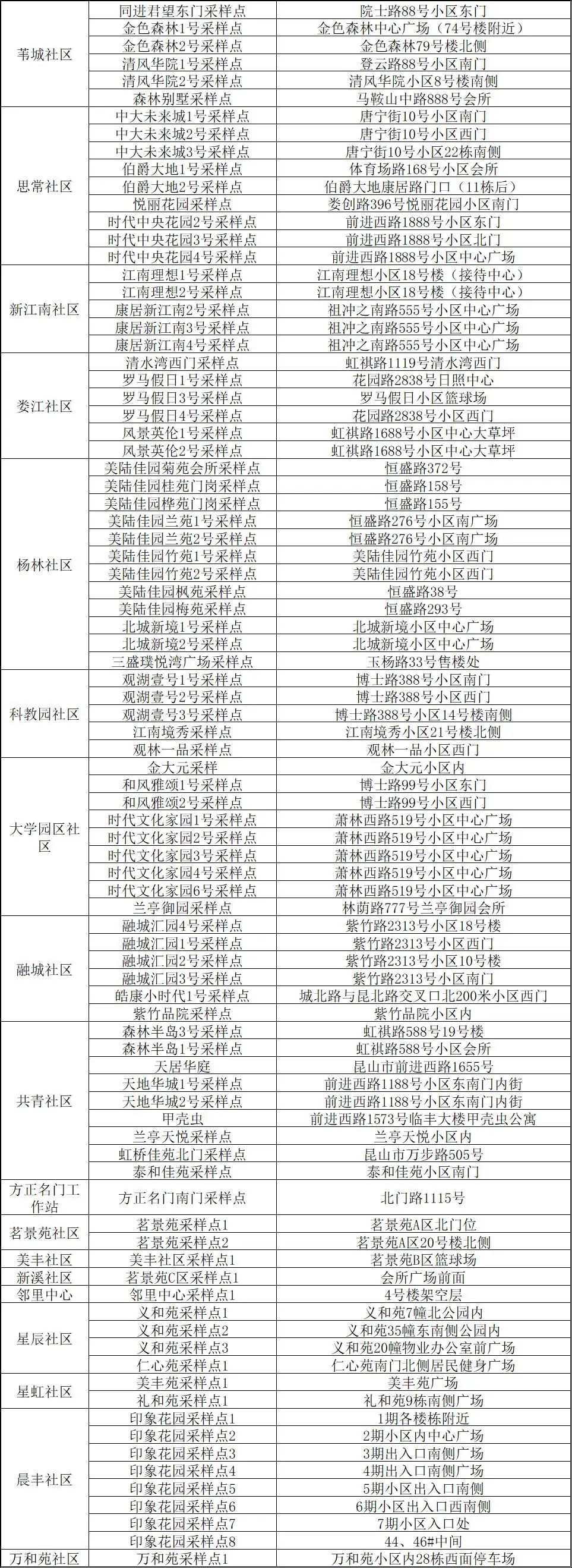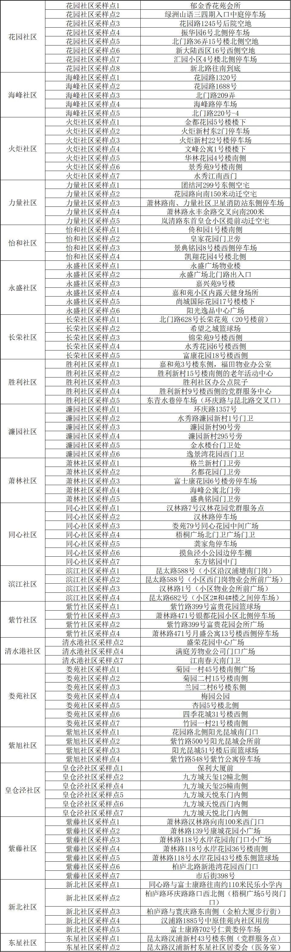 核酸检测采样点位明细