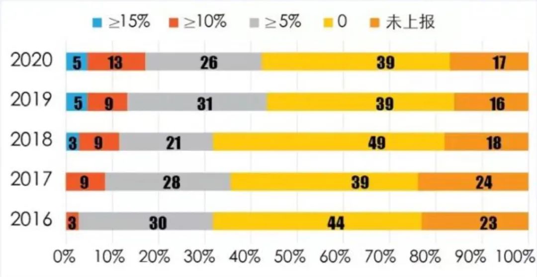 2016-2020年百强企业研发强度梯度分布