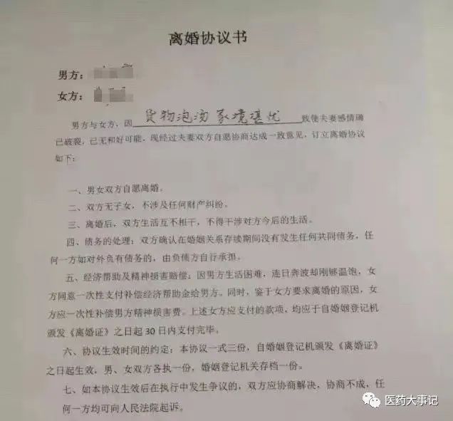 但是,在近期一位卖药人的离婚协议书却火了。