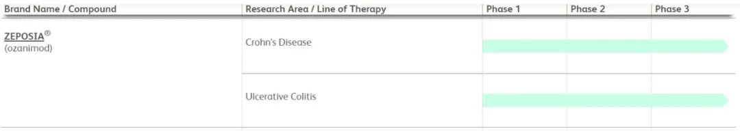 百时美施贵宝公司继续在一项开放性扩展试验中评估Zeposia,该试验正在进行中,旨在评估Zeposia治疗中重度活动性溃疡性结肠炎的长期疗效。以及一项III期YELLOWSTONE临床试验项目中研究Zeposia对中度至重度活动性克罗恩病的治疗作用。