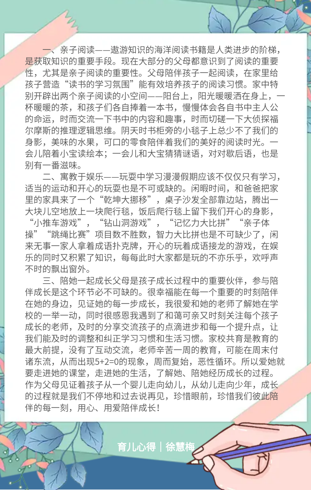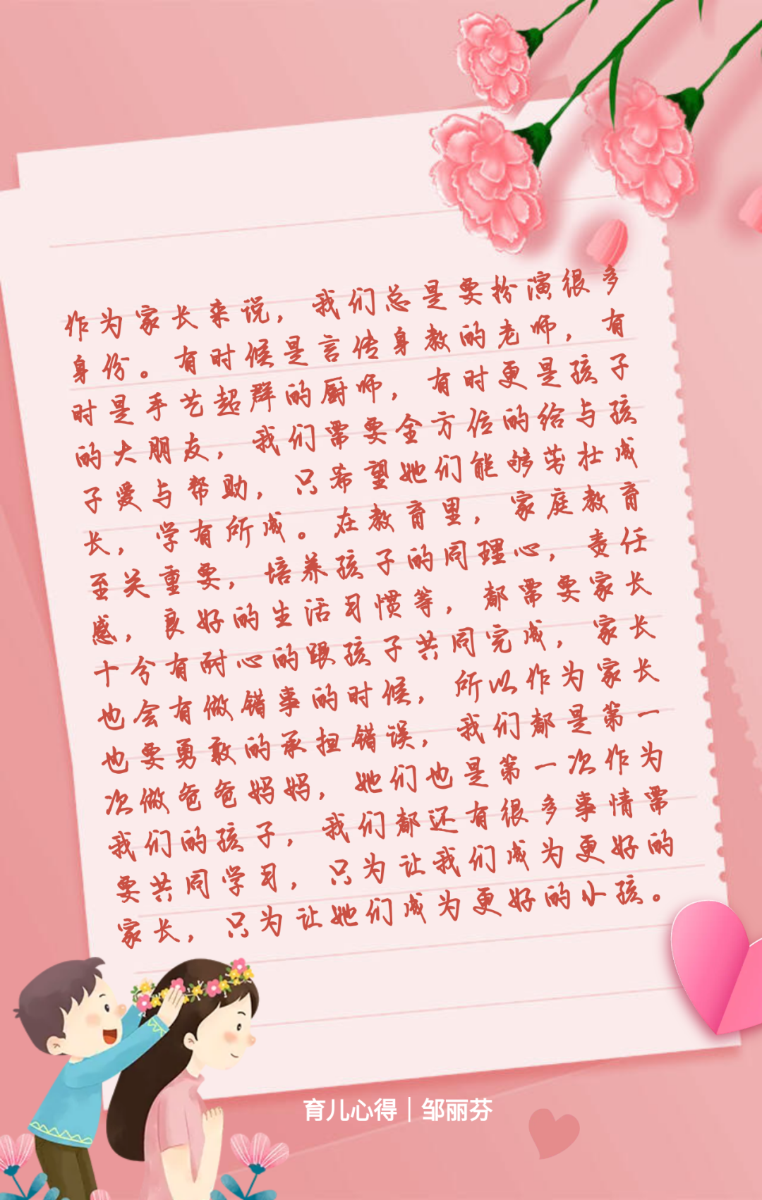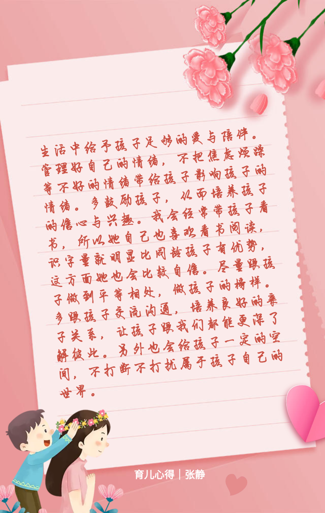“家庭育儿说”,育儿路漫漫,吾将上下而求索。高新区妇联共收到200余条育儿心得,家长们的良苦用心跃然纸上,本期选取其中5则留言与大家分享,互相借鉴学习。
