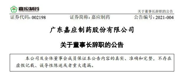2月25日,嘉应制药发布公告称,收到公司董事长陈建宁先生提交的书面辞职报告。