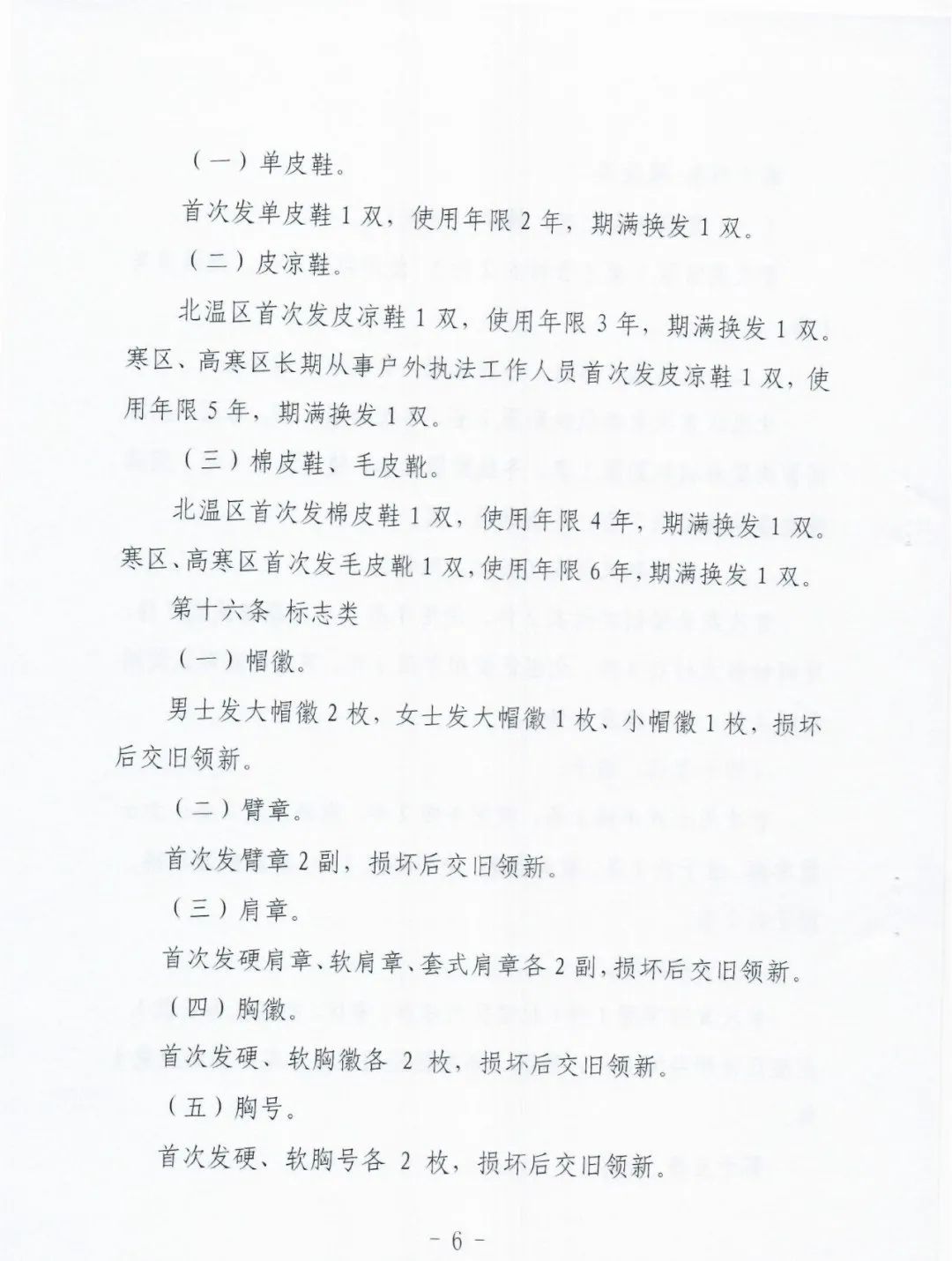 《实施办法》共分六章28条,包括:总则、配发范围、配发种类、气候区域和配发标准、配发管理和监督、附则。实施办法结合我省实际,在两部委管理办法规定执法制式服装和标志管理原则、配发范围、配发种类、配发标准、配发管理和监督以及式样、定额标准、气候区域划分基础上,从4个方面进行了细化,主要突出以下内容: