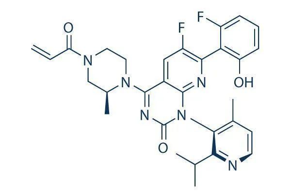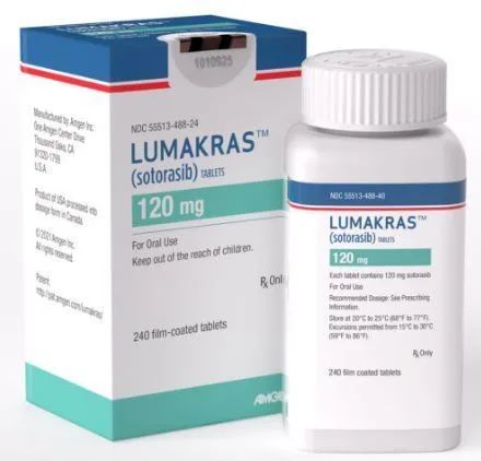 sotorasib是第一个进入临床开发的KRAS G12C抑制剂,于2021年5月获得美国FDA批准(商品名为Lumakras),用于治疗先前已接受过至少一种系统疗法、经FDA批准的检测方法证实存在KRAS G12C突变、局部晚期或转移性NSCLC成人患者。在临床试验中,sotorasib治疗显示出快速、深度、持久的抗癌活性,具有积极的益处-风险特征。