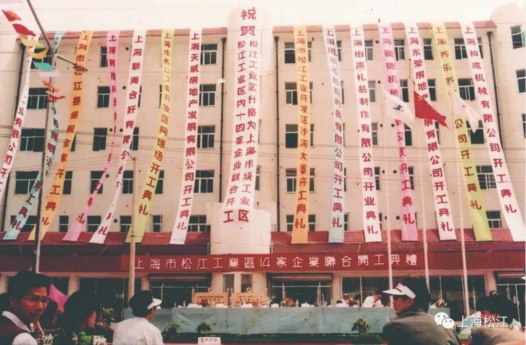▲1995年5月20日,松江工业区14家企业联合开工典礼