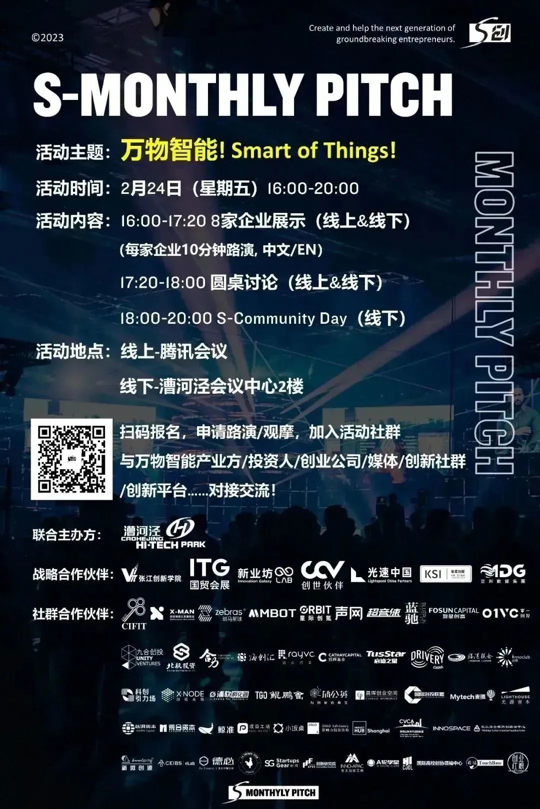 2月24日,由漕河泾开发区总公司科技创新中心作为合作伙伴的“万物智能 Smart of Things”主题活动即将开启,将有8家特色各异的万物智能领域企业进行路演展示;路演展示环节后,将邀请相关产业方、投资机构、创新平台及社群代表等组成圆桌,围绕“万物智能时代,初创企业如何走向全球市场”等话题进行讨论。活动的路演环节将进行线上线下联动,允许部分路演企业及专业观众线上接入,更多路演企业、嘉宾、专业观众将来到线下参与,同步搭建路演微信社群,促进资源匹配对接。