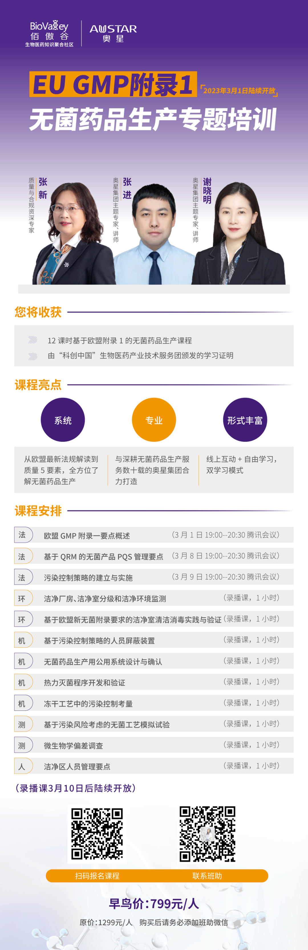 附录1建议无菌工艺的污染控制策略(CCS)要形成文件、设计、制定并实施。只有经验丰富的工程公司,将经验丰富的工艺工程师、冻干专家、微生物学家和无菌技术专家的技能结合起来,才能应对新的极端挑战要求,特别是SVP(小容量注射液)的冻干。